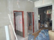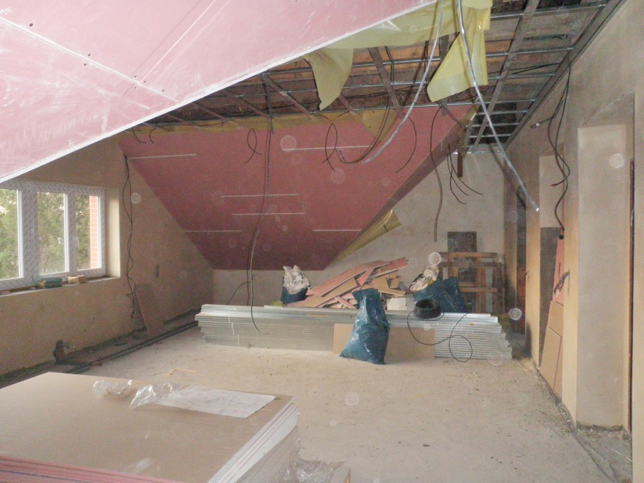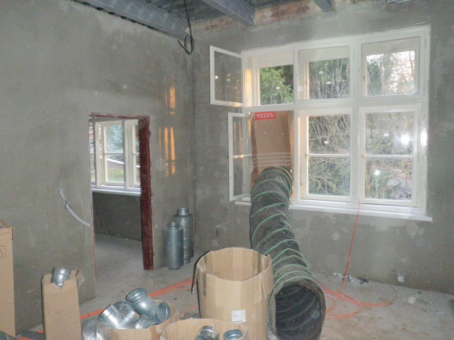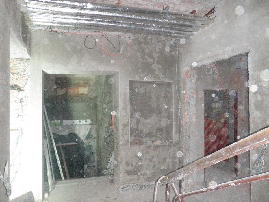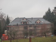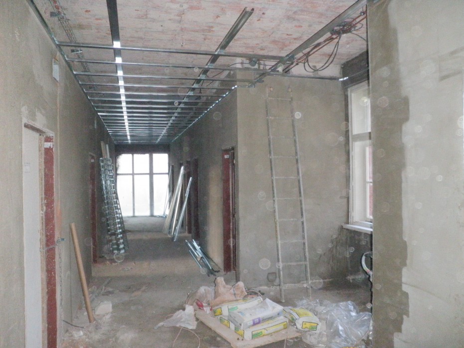 Práce uvnitř objektu jsou v plném proudu. Stavba začíná nabývat konečné podoby.