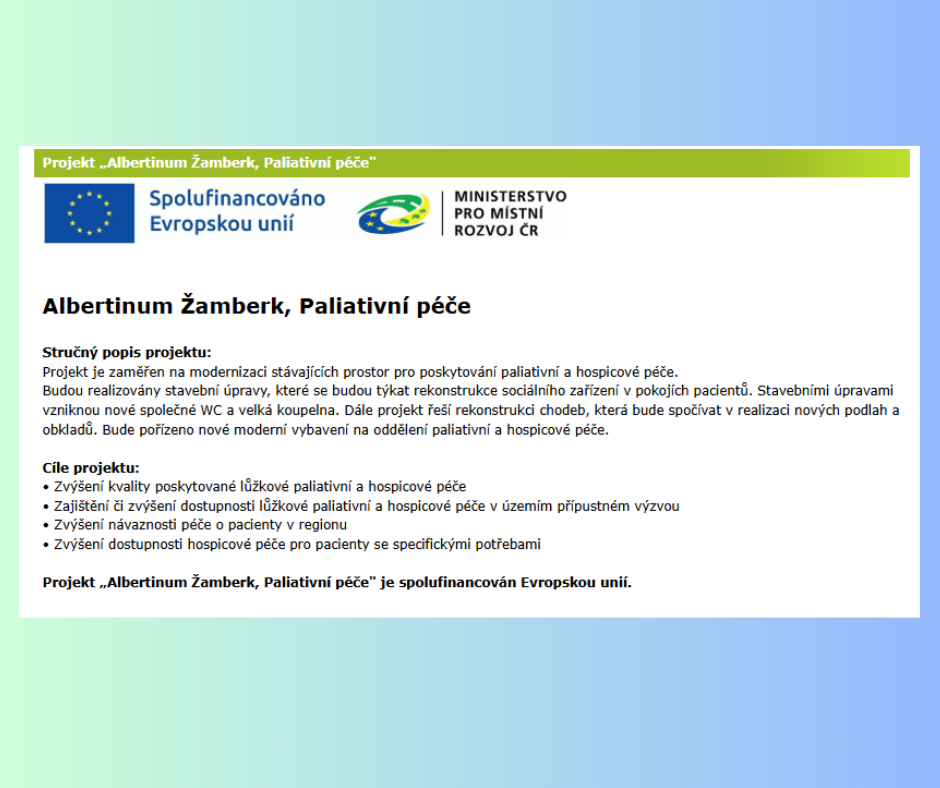 Projekt „Albertinum Žamberk, Paliativní péče" je spolufinancován Evropskou unií.