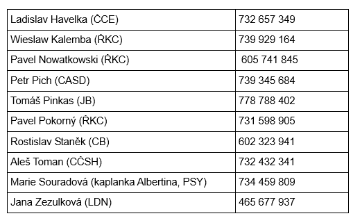 • Kdo by měl zájem o rozhovor s určitým konkrétním farářem, je to samozřejmě možné domluvit – kontakty naleznete v níže uvedené tabulce.