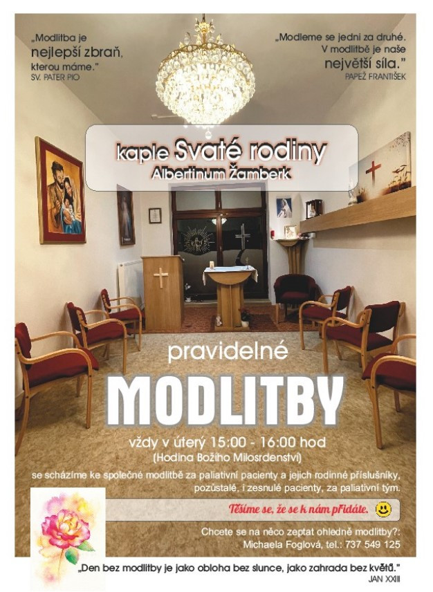 Na bohoslužbě jsou vítáni všichni naši pacienti i jejich rodinní příslušníci (bez známek respiračního, či jiného infekčního onemocnění).